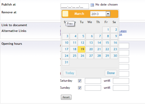 Why does the opening hours overwrite the standard date picker? And can I do anything about it?