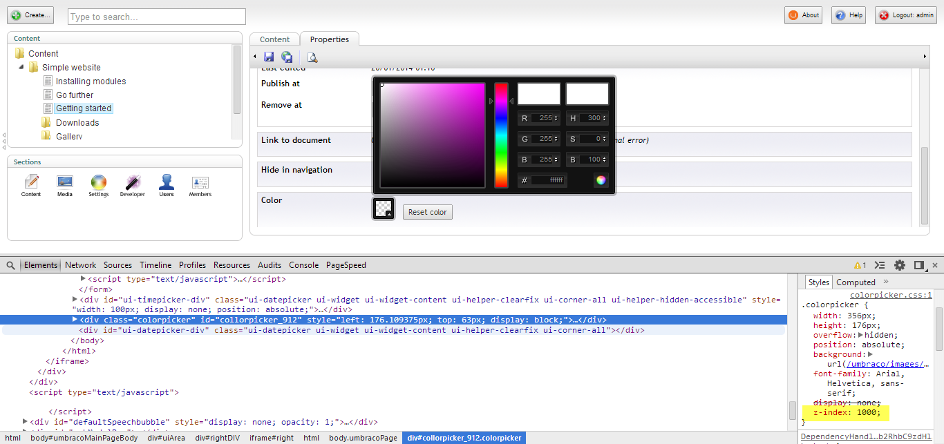 http://our.umbraco.org/projects/backoffice-extensions/true-color-picker/everything/38684-Color-picker-and-z-index