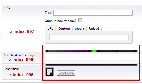 So in colorpicker.css .colorpicker need a z-index above at least 997 where my property is placed .. but would probably be better to set the z-indez something above 1000.