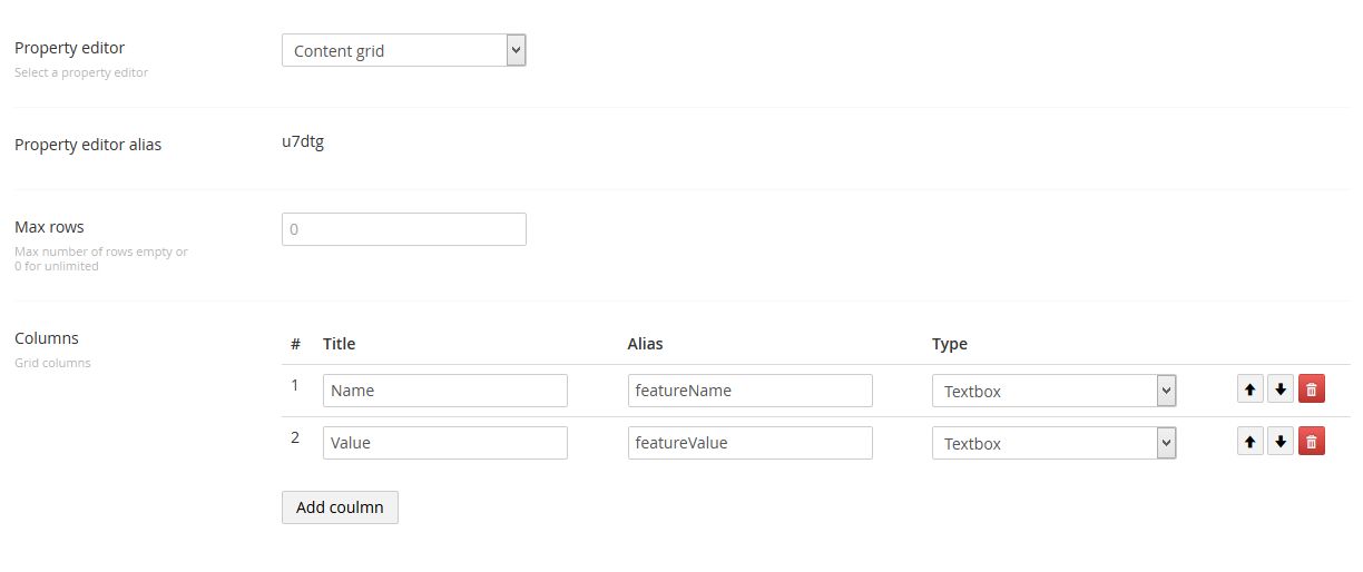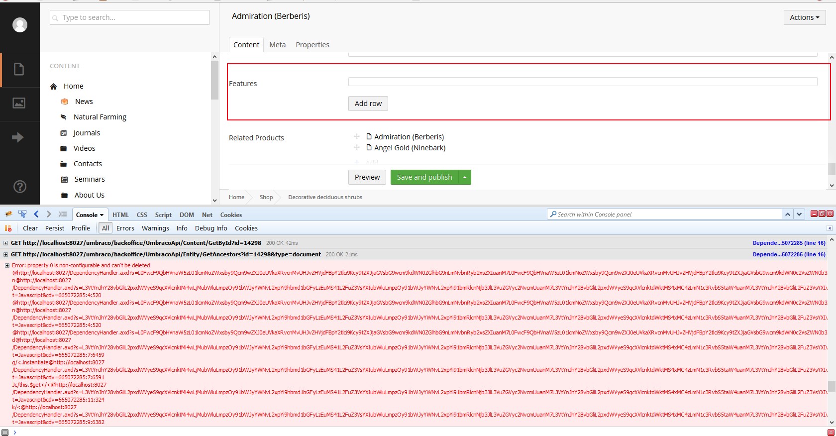 Error: property 0 is non-configurable and can't be deleted @http://localhost:8027/DependencyHandler.axd?s=L0FwcF9QbHVnaW5zL01lcmNoZWxsby9Qcm9wZXJ0eU ...I created "Product Features" (Content Grid) with fields: