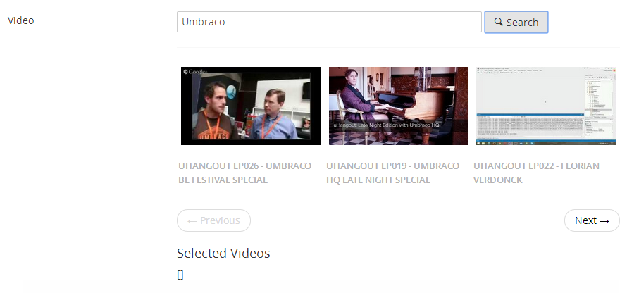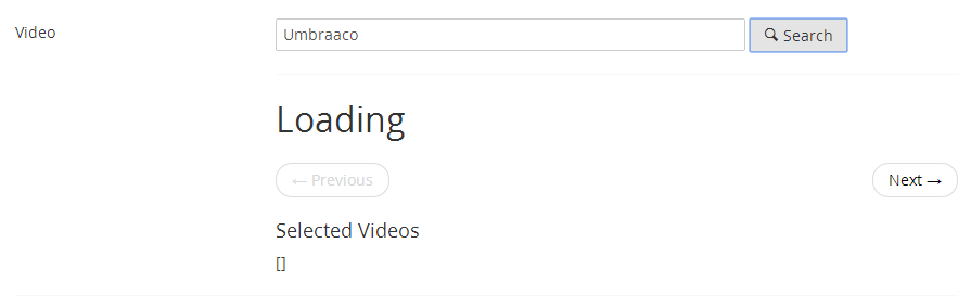 However is you search for e.g. Umbraaco it doesn't return any result and just display a Loading text - probably the text that is displayed when the videos load first time.