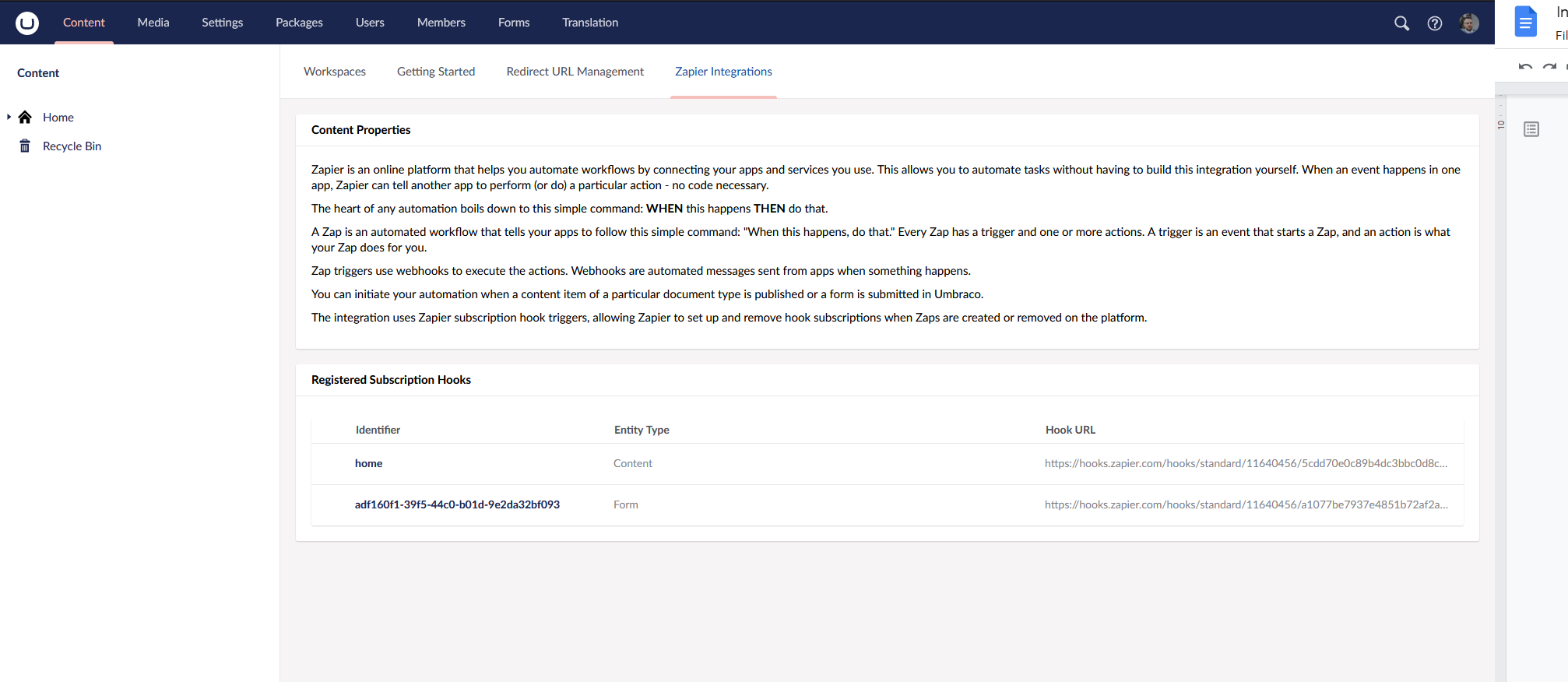 An extensions for Umbraco CMS providing an automation tool for calling Zapier triggers when specific content gets published.
