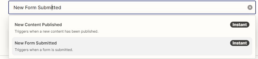 This package handles the New Form Submitted event - when form is submitted, the form entity is looked up in the subscription hooks list, and if a record is found, a POST request will be sent to the registered webhook URL with details of the submission. This will cause the Zap's trigger to be invoked, triggering the assigned actions.