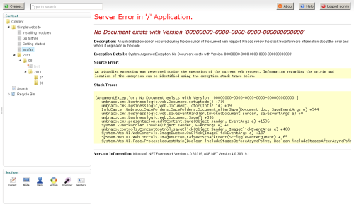 The node asdfaa is in 2011/08/2011/07, I want to move it to Simple website, I right click it and select move, I select destination node, then click OK, YSOD is appear. then I drag it to Simple website, It seems I done it, but I found I cann't save the node or publish the node, if you do it, you will get a YSOD.
