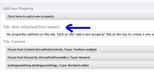 But, browsing this doctype only the tabs are inherited. No properties show up on the inherited tabs: