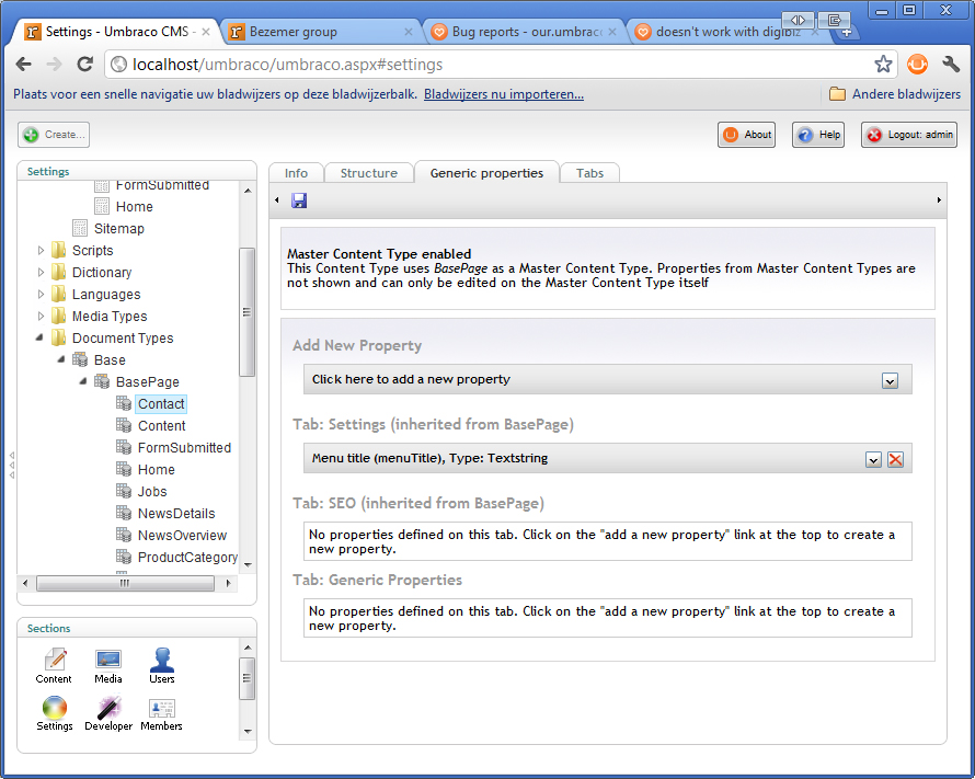 Since 4.6 it's possible to add properties to inherited tabs, but those properties are not visible on the standard values page. Here is a sample: