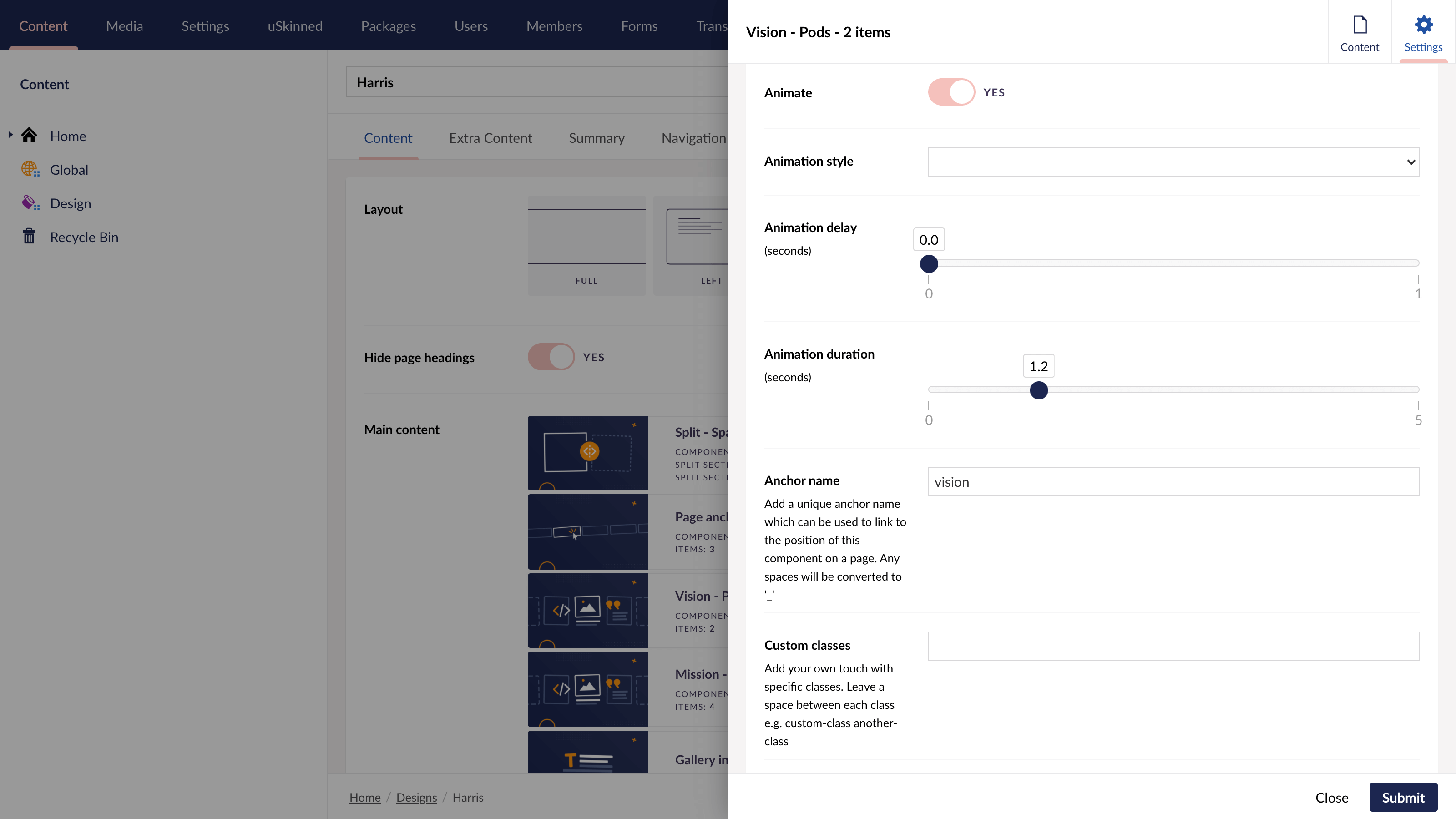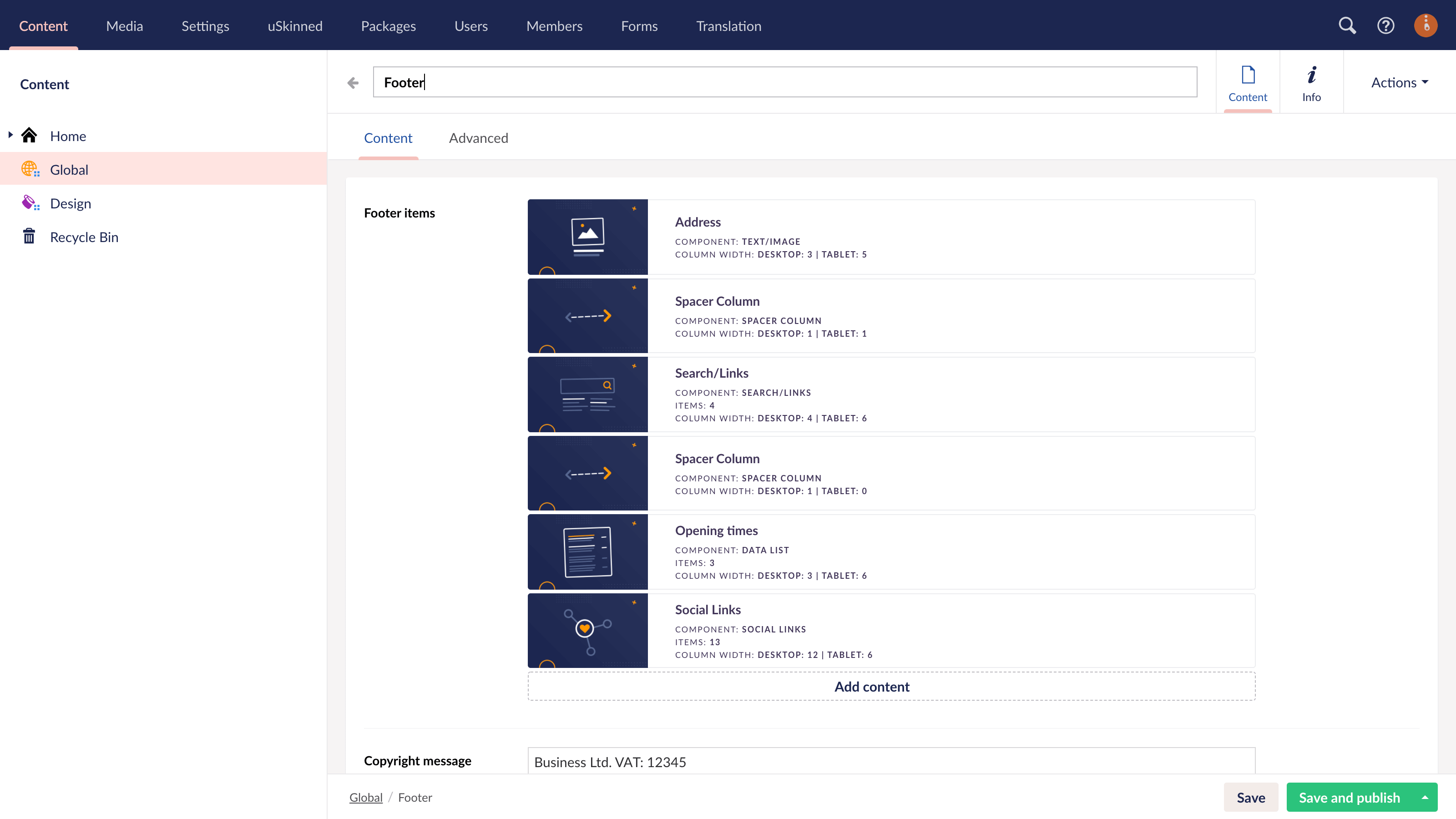 Control your entire site's design with our global design editor. uSkinned let's you create a website design system.
