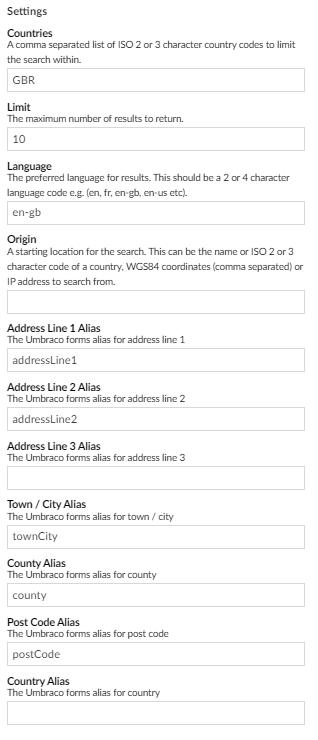 This package adds Loqate address verification to Umbraco Forms.
