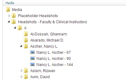We are reorganizing our media library now. So we're going to move to the system you recommend above. When it's done, we'lll post the before and after results as a mini-case study. In this way, others can see how the transition takes place and how much time it ended up save us, which will be considerable - as these bios, once we add residents, fellows and some staff to the existing 125 faculty, will balloon to two to three times that number.