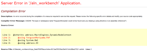 When I use the Razor Example template, I get the following error: